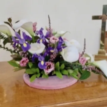 Church members take turns to provide flower arrangements such as these.